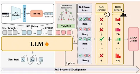 - VSL+RSPO — VSL добавляет в обучение бизнес-сигнал: модель предсказывает не только последовательность SID-токенов, но и дискретизированный eCPM. Добавляют перевзвешивание: более ценные пользователи и более важные действия получают больший вес. RSPO — RL-style компонента для list-wise-оптимизации. Вместо point-wise-обучения модель учат ранжировать список объявлений так, чтобы улучшать NDCG.