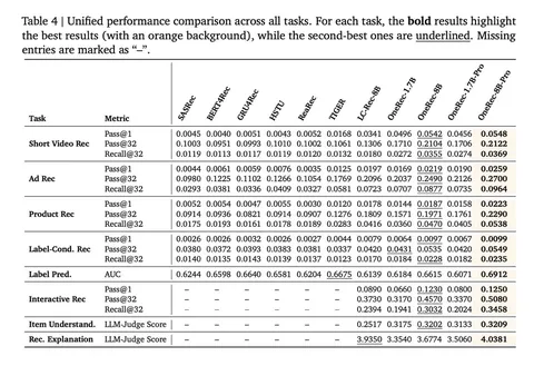 Результаты у статьи впечатляющие. UA-SID сам по себе даёт ограниченный прирост к базовому генеративному ранкеру, основной буст происходит от способа обучения: VSL + RSPO заметно поднимают revenue относительно OneRec-V2. Сервисные оптимизации тоже ощутимые: LazyAR почти удваивает QPS без заметной просадки по качеству, а DBS помогает поймать баланс между скоростью и доходом. В A/B-тестах репортят увеличение рекламной выручки до 4,2% по сравнению с сильным бейзлайном на основе DLRM. Модель здорово масштабируется по качеству в зависимости от beam search width и количества параметров.